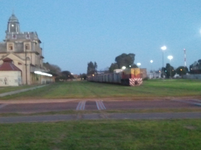 En las siguites imagenes podemos ver a la General Motors 7770 + 7739 apagadas con vagones cargados, los mismos seran bajados a Puerto Rosario mañana 26/09/12 a primera hora del dia. Rosario. Zona Centro. (25/09/12). 19:00 Hs. Leonel